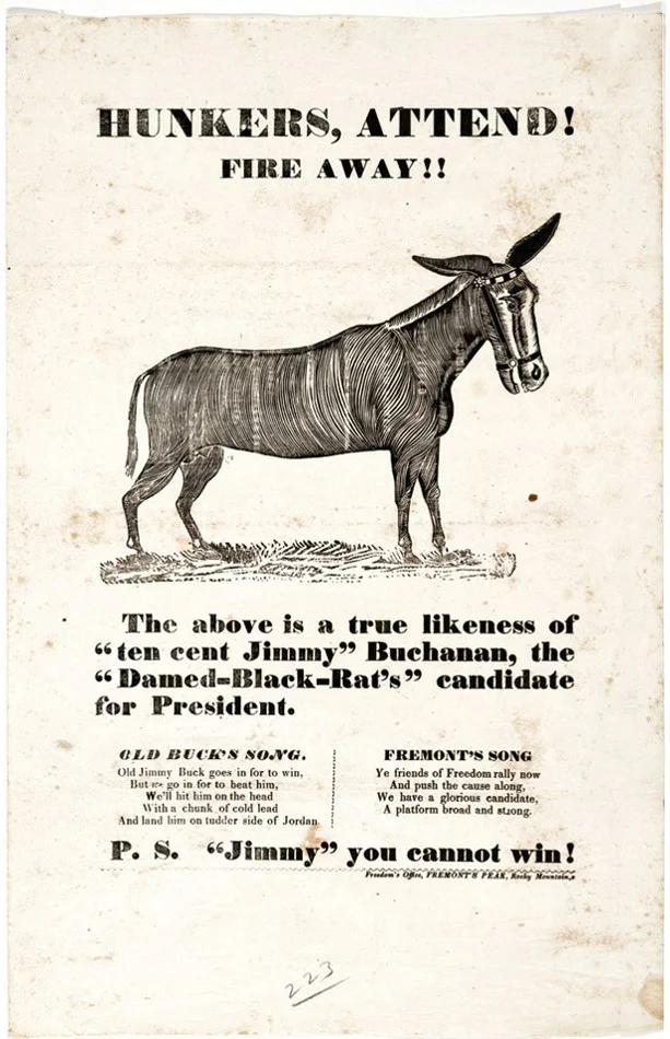 Anonymous. 1856. "Hunkers, attend! Fire away!" Woodcut and Letterpress. Library of Congress.