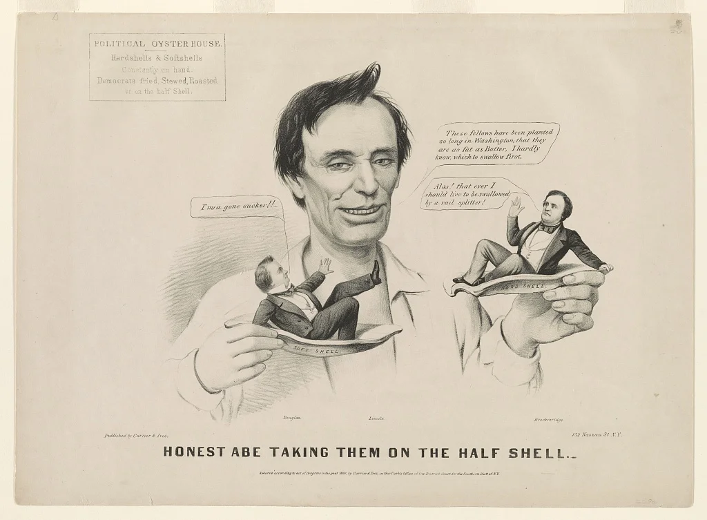 Anonymous. c.1860. "Honest Abe taking them on the half shell." Currier & Ives. Lithograph. Library of Congress Prints and Photographs Division Washington, D.C. 20540