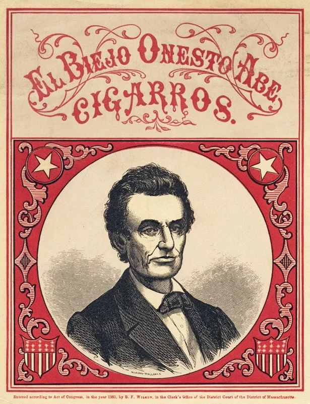 B.F. Wilson. 1860. "El Biejo Onesto Abe Cigarros." Woodcut Etching and Letterpress. - Source: Maria Popova. 2012. "200 Years of Stunning and Strange Presidential Campaign Posters." The Atlantic. Accessed: May 23, 2016. http://www.theatlantic.com/entertainment/archive/2012/06/200-years-of-stunning-and-strange-presidential-campaign-posters/258044/