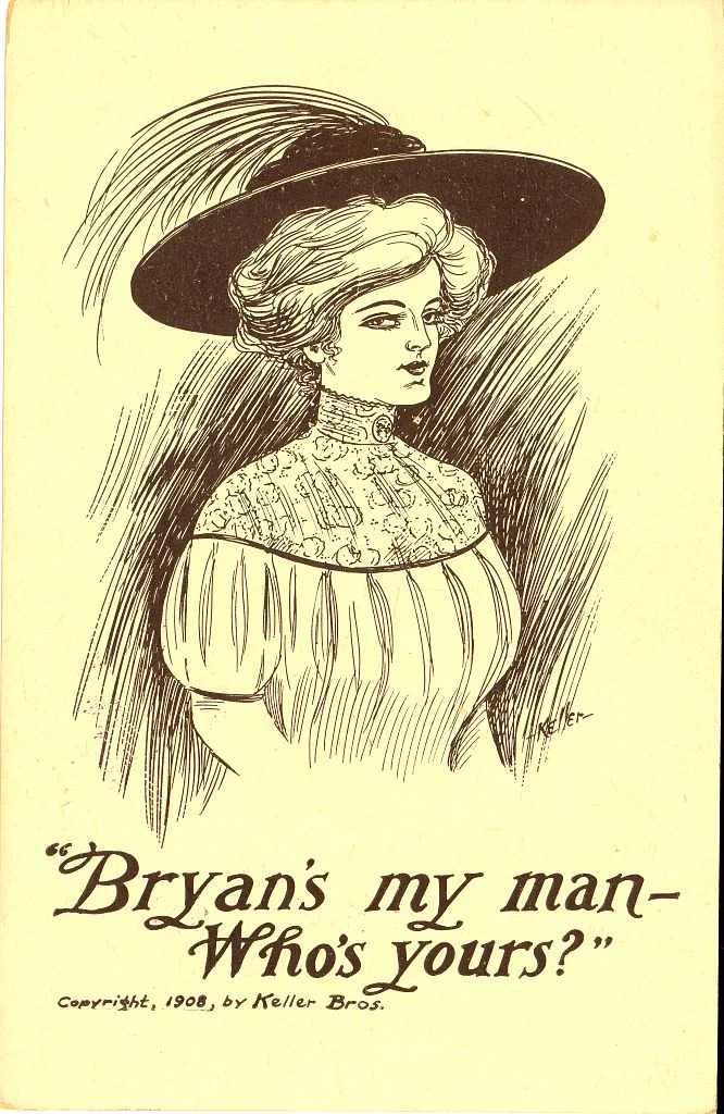 Anonymous. “Bryan’s my Man – Who’s Yours?” Keller Brothers. Zinc Plate Lithograph Postcard. Library of Congress Prints and Photographs Division Washington, D.C. 20540