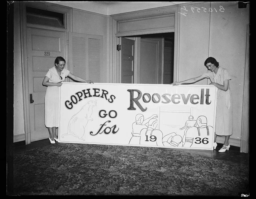 Anonymous. 1936. "Gophers go for Roosevelt 1936." Harris & Ewing. Black and White Glass Negative. Library of Congress Prints and Photographs Division Washington, D.C. 20540