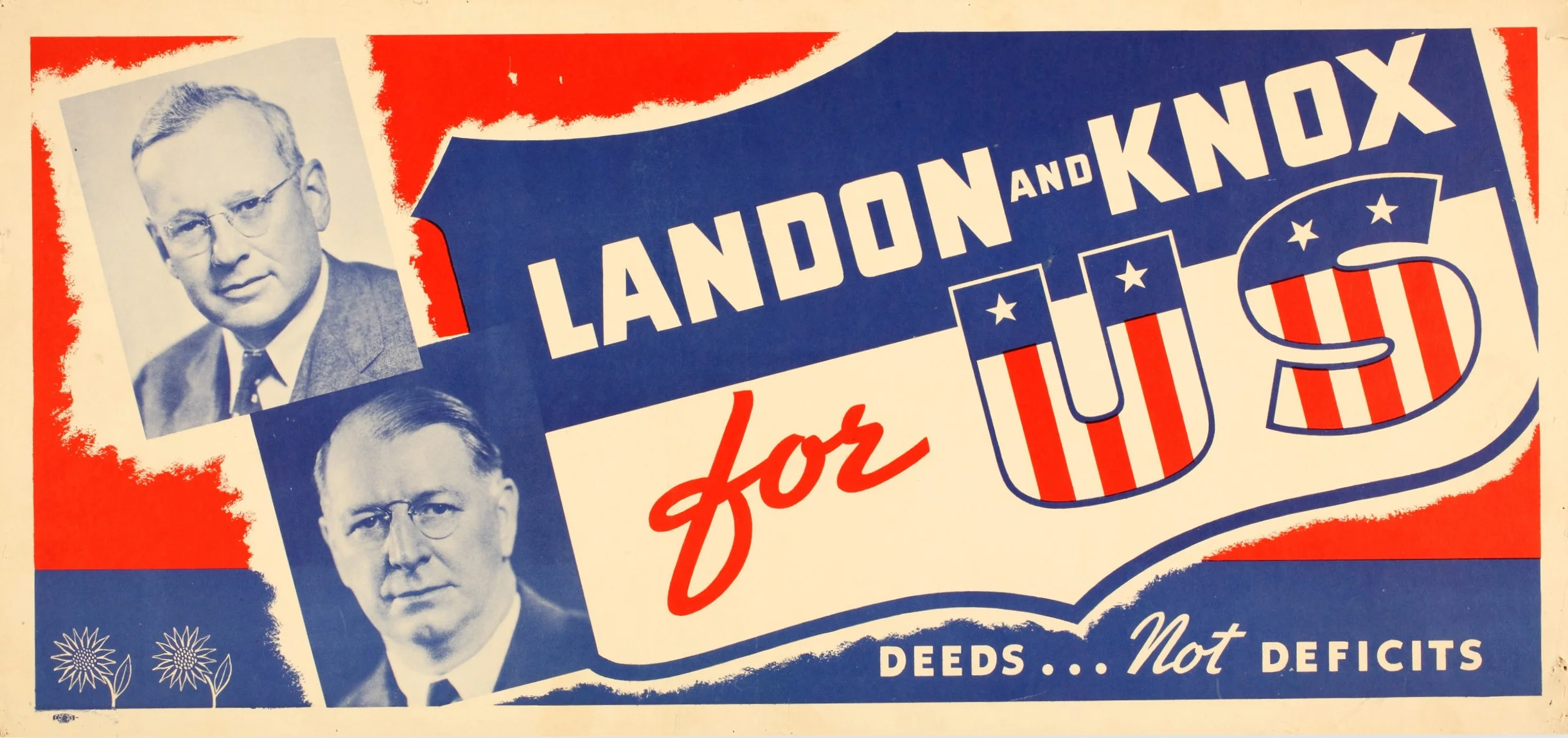 Anonymous. 1936. "Poster for 1936 Landon and Knox presidential campaign." Print. Kansaspedia. Kansas Historical Society. https://www.kshs.org/kansapedia/campaign-collectibles/19543