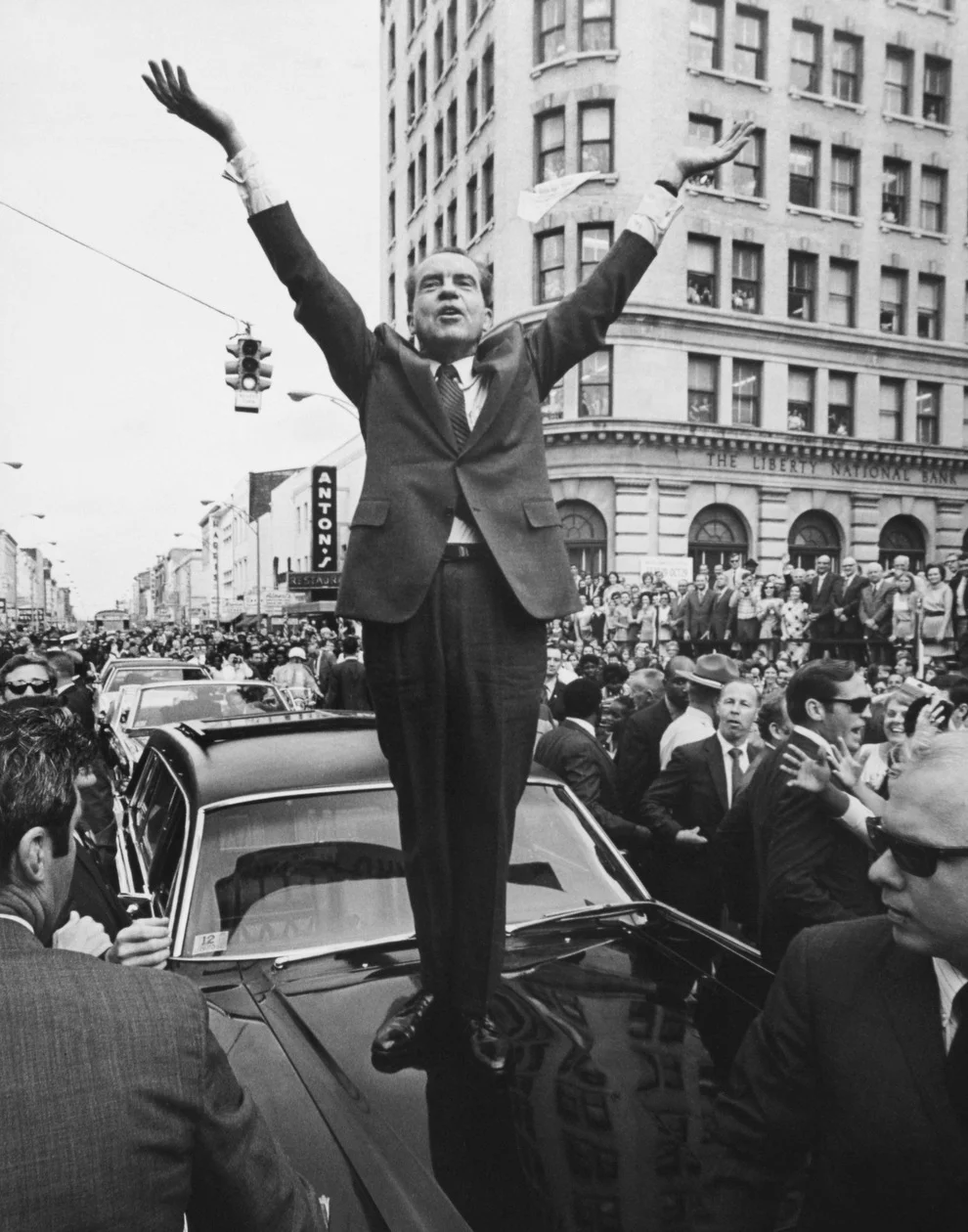 Anonymous. 1960. "Richard Nixon Stands on a Car as He Campaigns." Black and White Photograph. From Marie McGrory's "Presidential Access: Unguarded Moments, Captured On Film," North Country Public Radio (2013). Accessed: May 24, 2016. http://www.northcountrypublicradio.org/news/npr/169701867/presidential-access-unguarded-moments-captured-on-film
