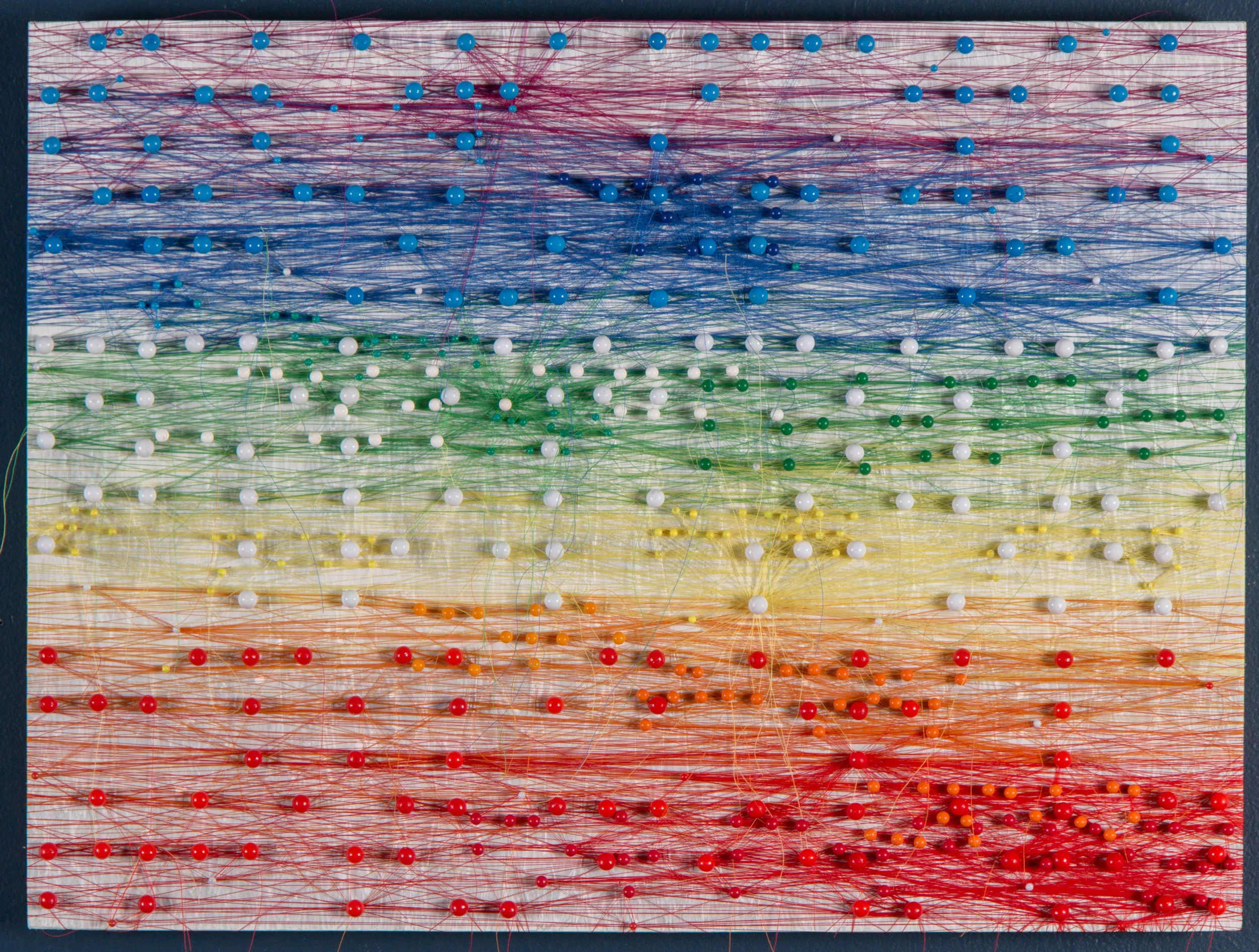 Because origin of form is addressed through an array of disciplines, as I seek information about physical realms, I look to historic and current sources in biology and geology. For the conceptual domain, I explore mathematics and the cosmology, all the while capturing and organizing bits of abstract information on a grid like segments of DNA interacting to unfold to recognition when the time is right.